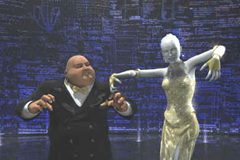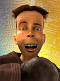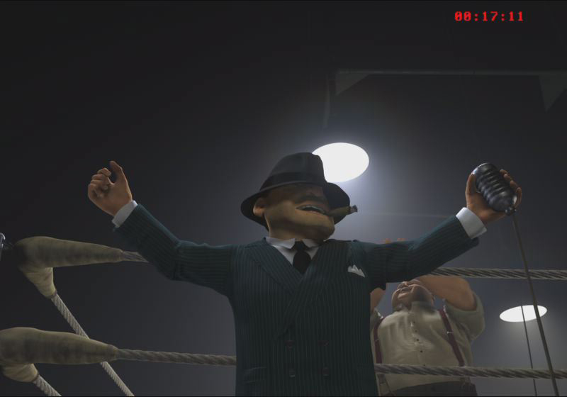Our hero. He starts his life as a virtual actor as a tiny polygon and becomes a movie star in the making! Then he travels back to the 1930s for his acting debut. The setting—a boxing arena filled with cheering fans. The story—featherweight Slim vs. heavyweight Killer, a mountain of muscle. Our poor hero must use every trick up his sleeve just to stay in the fight!
