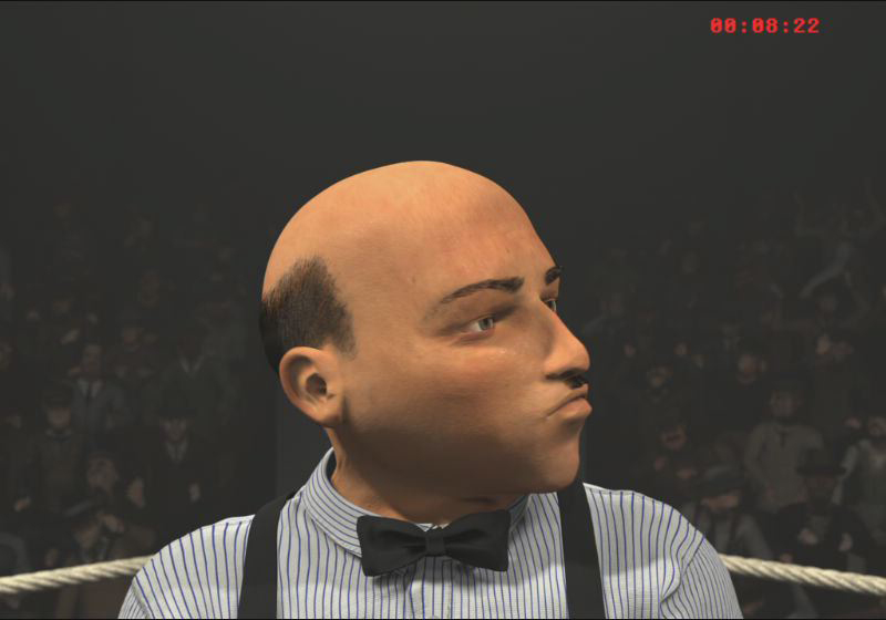 The sleazy promoter. Short in height, but tall in attitude, he will stop at nothing to please the crowd. His three rules for a good fight: entertainment, entertainment, entertainment.